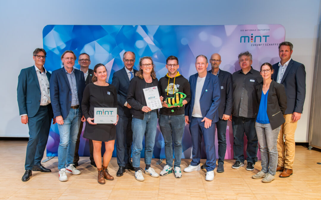 An der Janosch-Grundschule forschen, programmieren, recherchieren und experimentieren die Kinder schon seit vielen Jahren in vielen Fächern. Besonders in den MINT-Fächern (Mathematik, Informatik, Naturwissenschaften, Technik) fördern wir damit ihre Kompetenzen und beobachten die stetige Neugierde und das große Interesse an den Themen. Das sieht nun auch die nationale Initiative „MINT-Zukunft schaffen“ so und zeichnete uns daher dieses Jahr zum ersten Mal als MINT-freundliche Schule aus. Stellvertretend für unsere Schule nahmen am 23.9.2025 die Tigerente, unsere MINT-Koordinatorin Jule Wunderlich und unser Konrektor Jan Günther die Urkunde entgegen. Die Ehrung fand im Rahmen einer zentralen Veranstaltung im Heinz Nixdorf MuseumsForum in Paderborn statt. Dort wurden 236 Schulen aller Schulformen aus Nordrhein-Westfalen für ihr besonderes Engagement im Bereich MINT ausgezeichnet. Wir freuen uns und sehen uns bestärkt auf unserem Weg, an unserer Schule zukunftsorientierte und vielfältige Lernangebote zu schaffen. Schulleiterin Jessica Giebel betont: „Die Auszeichnung zeigt, dass sich unsere gemeinsamen Anstrengungen lohnen. Wir möchten Kinder frühzeitig für naturwissenschaftliche und technische Themen begeistern und ihnen Freude am Forschen und Entdecken vermitteln.“ Künftig sollen neben bestehenden Konzepten wie den regelmäßigen im Stundenplan verankerten Forscherstunden, dem projektorientierten Forschertag und unserer Roboter-AG auch neue Impulse und Kooperationen mit außerschulischen Partnern sowie der Teilnahme an weiteren Wettbewerben das MINT-Angebot weiter stärken.